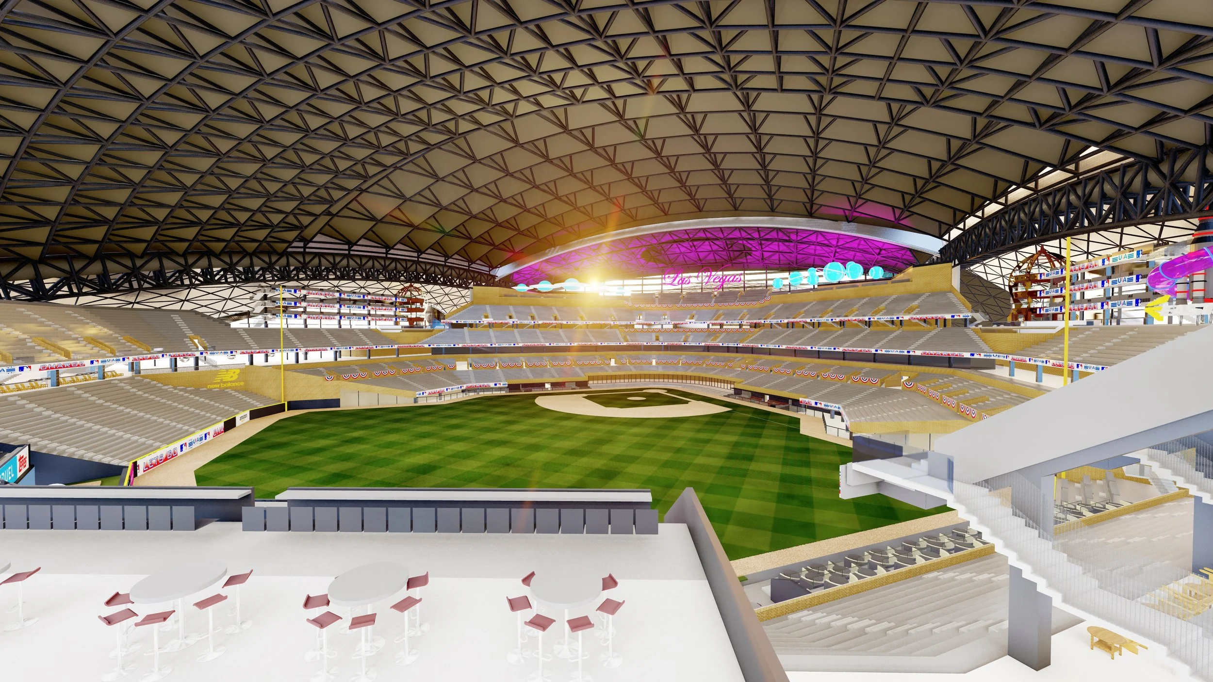 The ballpark has options of either having a giant center field video board or two video boards on the corners giving you views of LV.